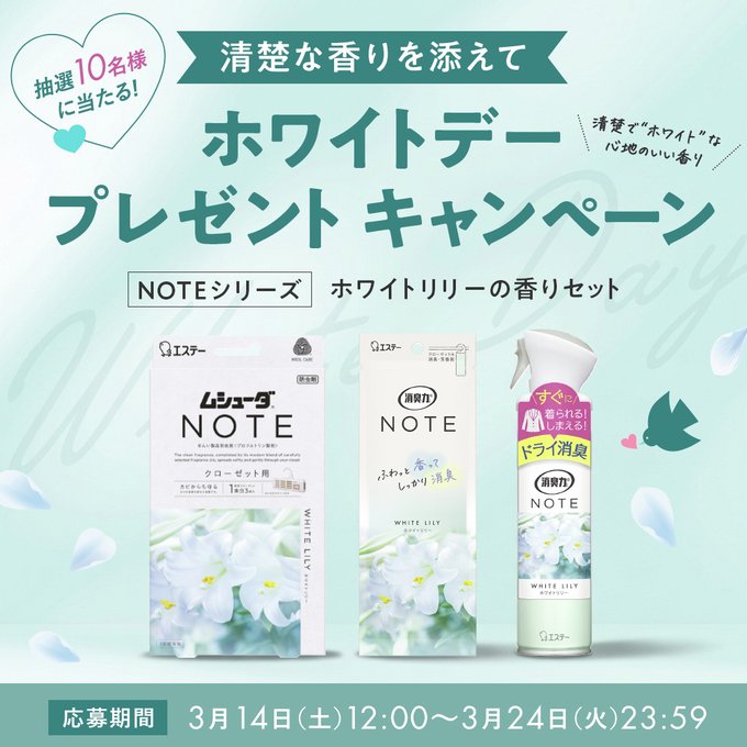 賞品:NOTEシリーズのホワイトリリーの香りセット(10名様)