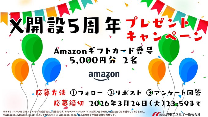 賞品:Amazonギフトカード番号5,000円分(2名様)
