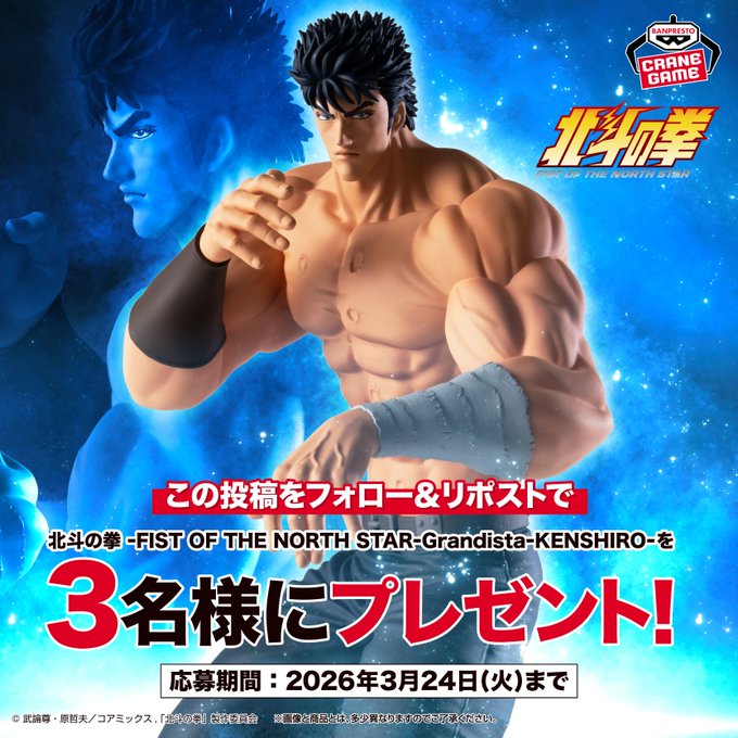 賞品:北斗の拳 FIST OF THE NORTH STAR Grandista KENSHIRO(3名様)