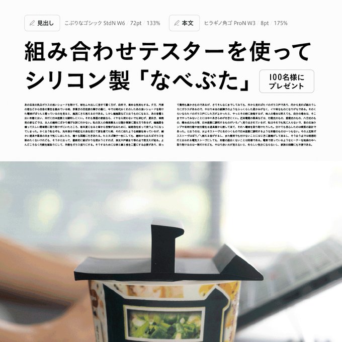 賞品:ヒラギノUD明朝「なべぶた」(100名様)
