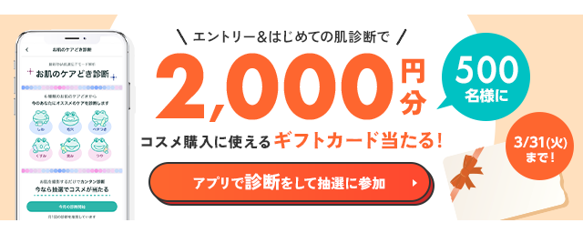 初めて診断する方限定! エントリー&@cosmeアプリで「お肌のケアどき診断」をすると応募完了。