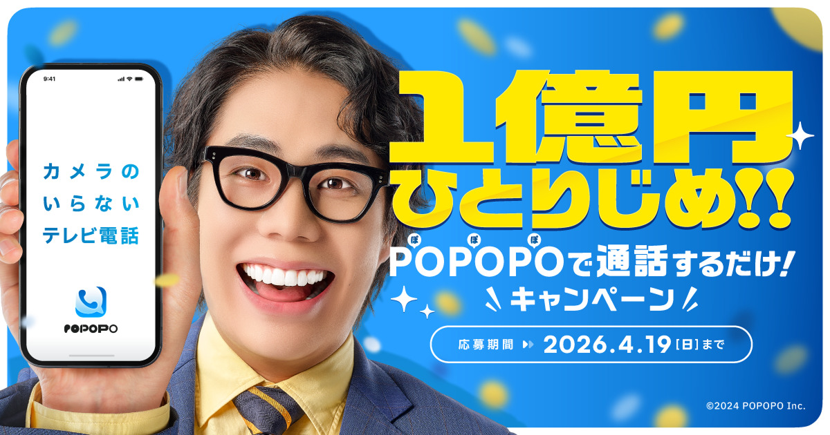 キャンペーン期間中、カメラのいらないテレビ電話「POPOPO」で通話をすると1名様限定で1億円当たります。