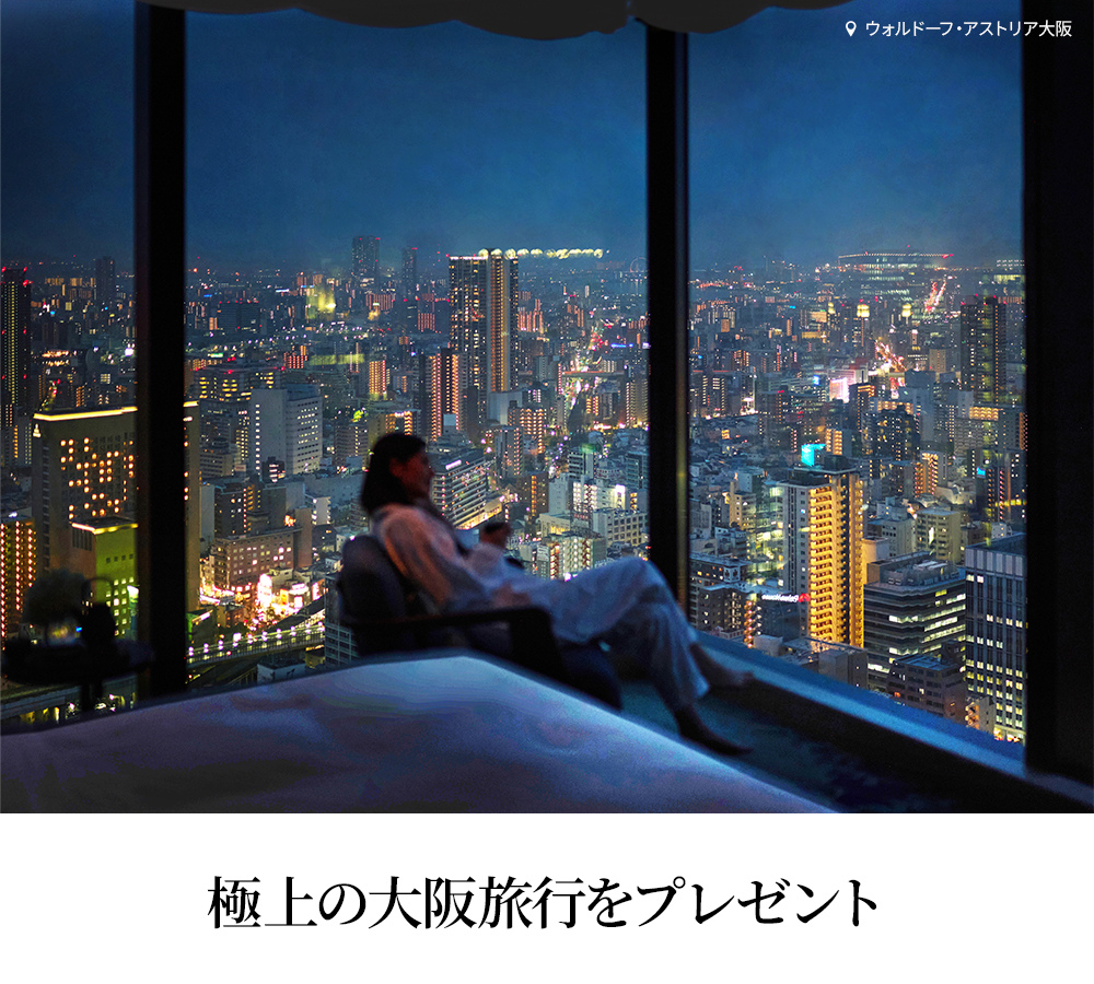 「ウォルドーフ・アストリア大阪」のスイートルームご宿泊と2名様分の往復航空券をプレゼント 2026.03.22ヒルトン・オナーズ‐極上の大阪旅行をプレゼント 賞品:「ウォルドーフ・アストリア大阪」のスイートルームご宿泊と、2名様分の往復航空券 締切:2026年4月30日(木)ご応募には会員登録/ログインが必要です。※詳細はキャンペーンページにてご確認ください。応募はこちらから