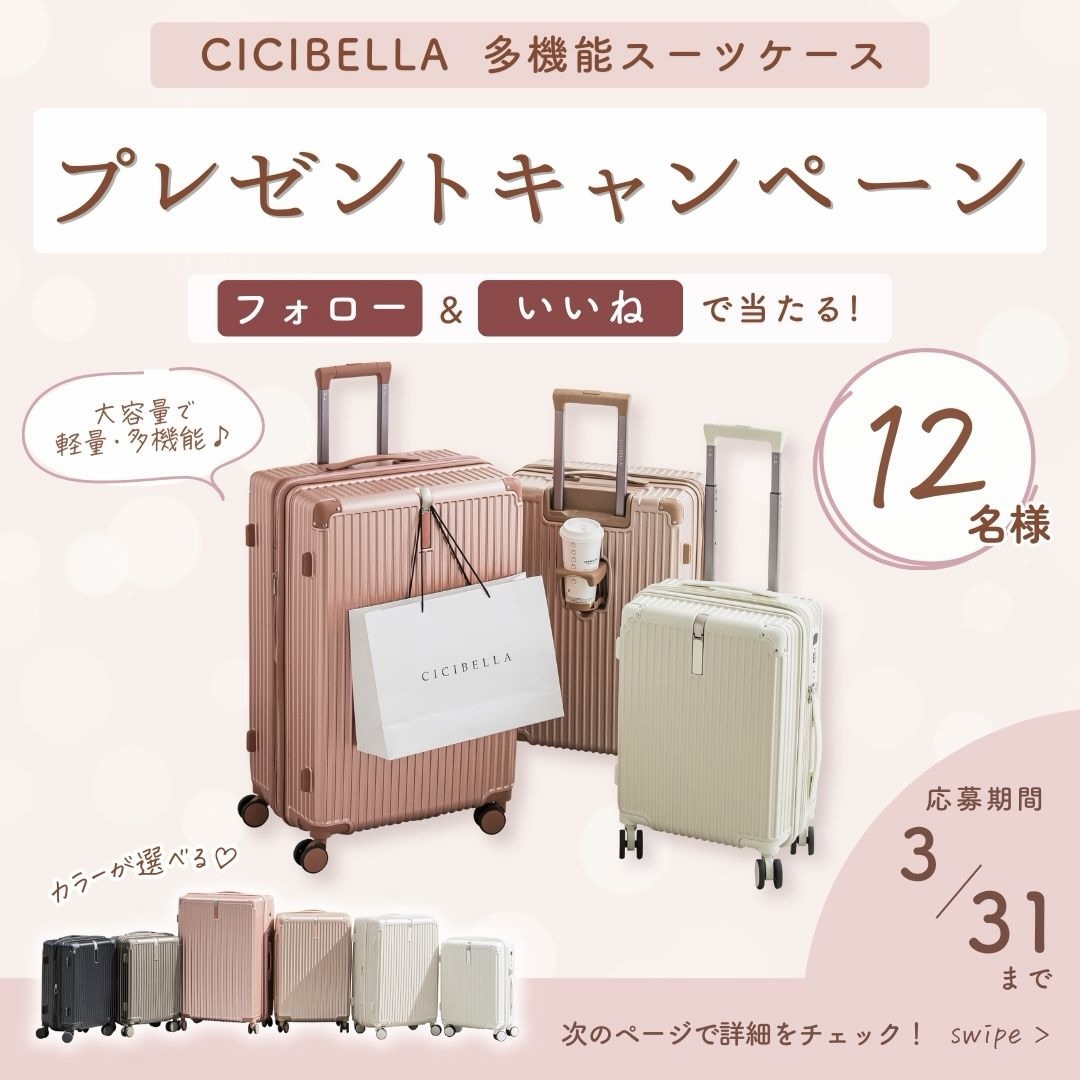 賞品:CICIBELLA 多機能スーツケース Mサイズ(12名様)