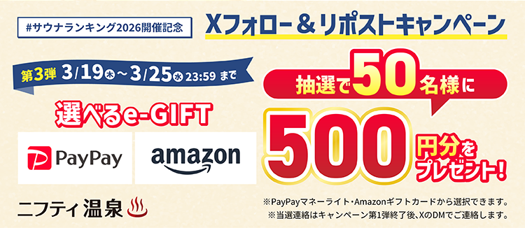 ニフティ温泉‐#サウナランキング2026 開催記念CP