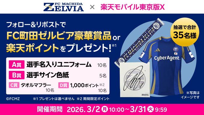 楽天モバイル東京版X×FC町田ゼルビア フォロー&リポストキャンペーン