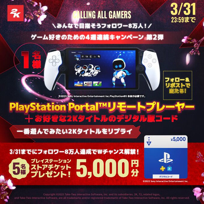 PlayStation Portal™ リモートプレーヤー+お好きな2Kタイトルのデジタル版コード…1名