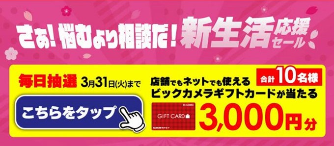 賞品:ビックカメラギフトカード3,000円分(10名様)