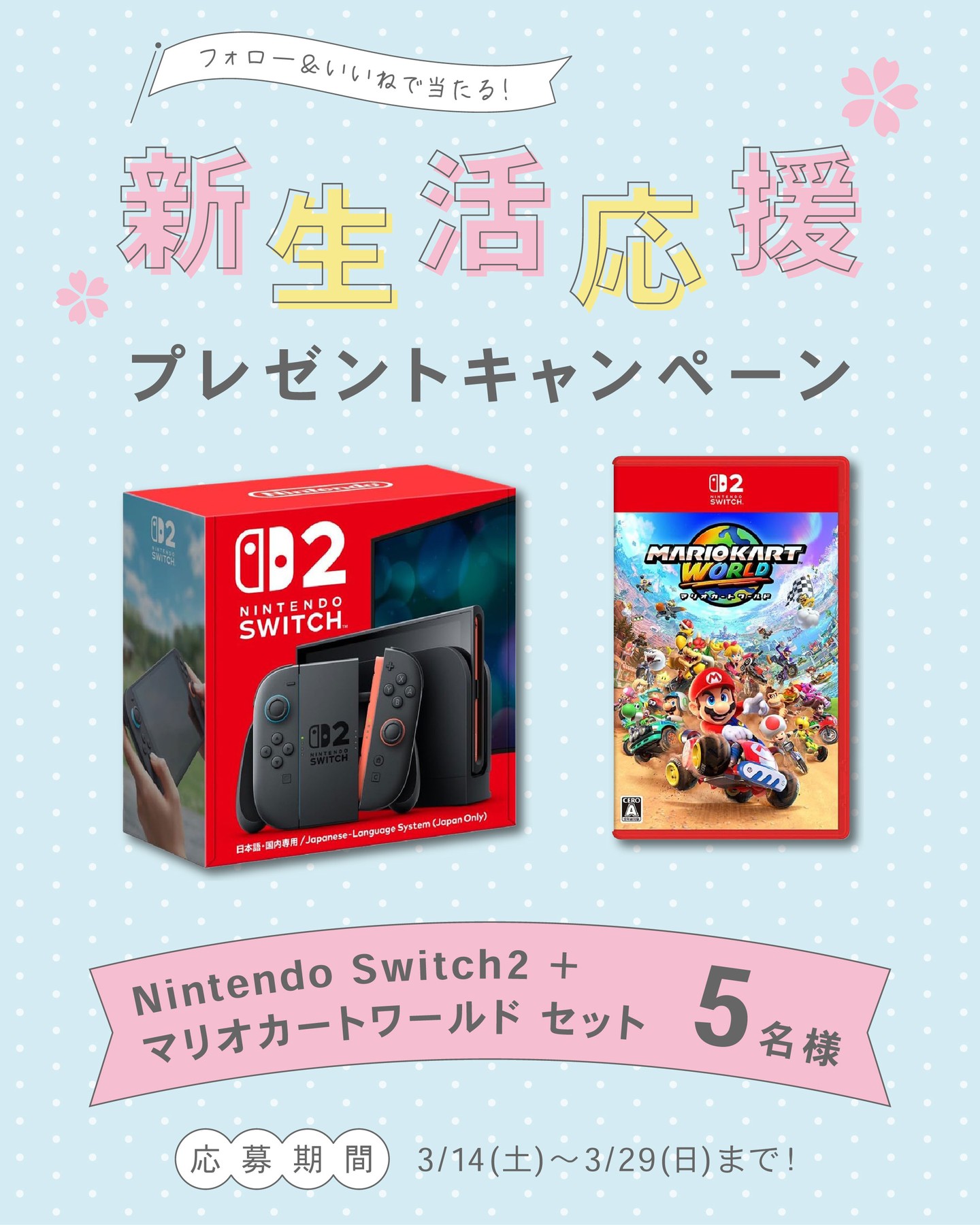 賞品:『Nintendo Switch 2』と『マリオカート ワールド』のセット(5名様)