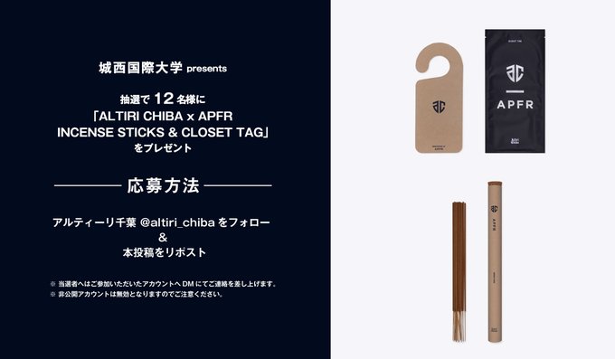 賞品:ALTIRI CHIBA x APFR INCENSE STICKS & CLOSET TAG(12名様)