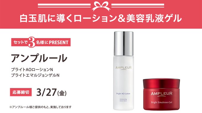 賞品:アンプルール ブライトAOローションN&ブライトエマルジョンゲルN(3名様)