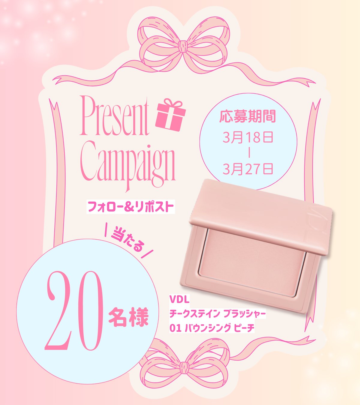 賞品:VDL チークステイン ブラッシャー バウンシング ピーチ(20名様)