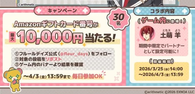 フルールデイズ(フルイズ)公式Xアカウントをフォロー&キャンペーン対象ポストをリポストして、ゲーム内よりご応募ください。