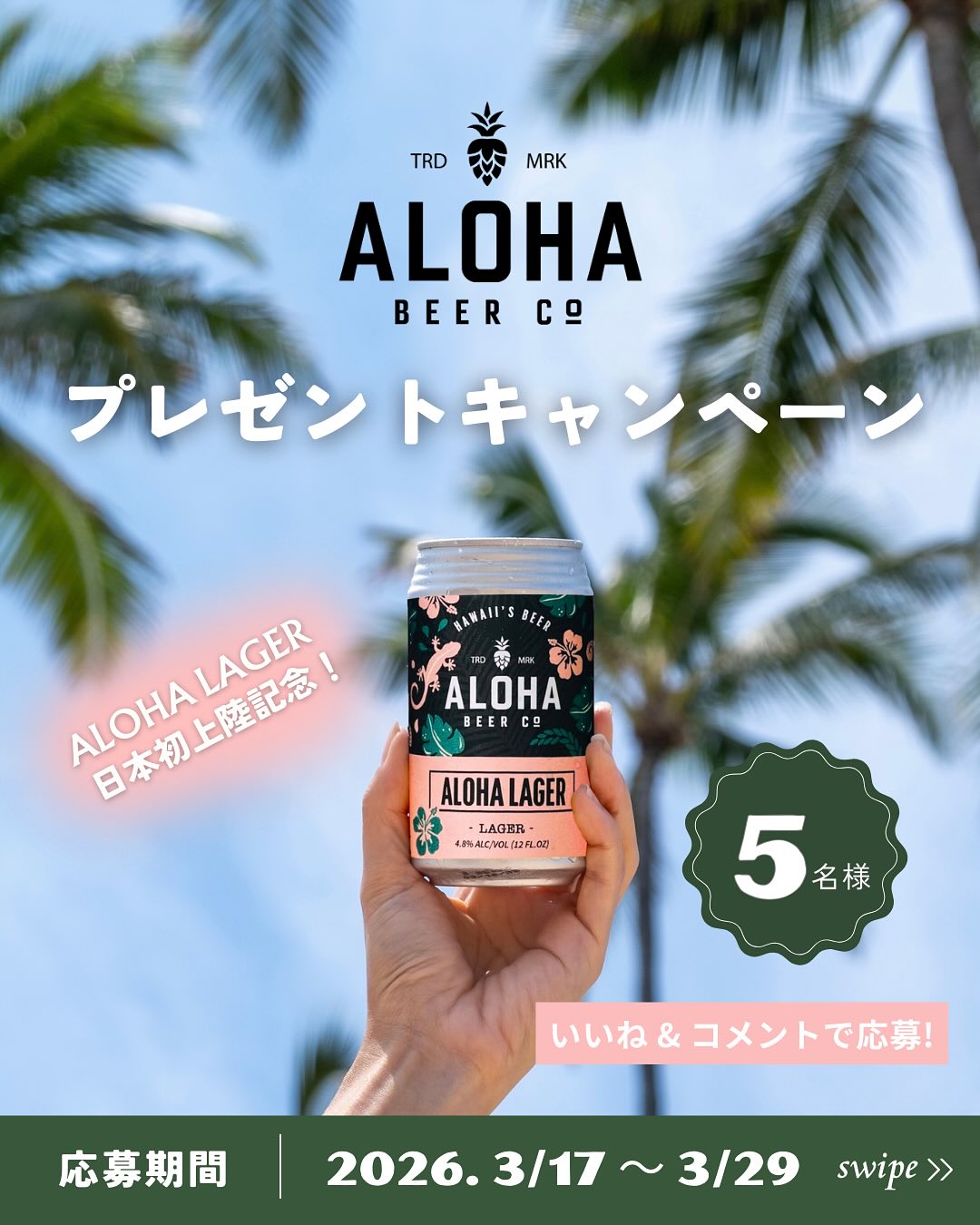 賞品:新商品のALOHA LAGERを含む、ハワイアンビールセット(5名様)
