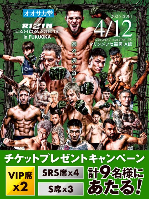 【X懸賞】RIZIN LANDMARK13 福岡大会の観戦チケットを9名様にプレゼント