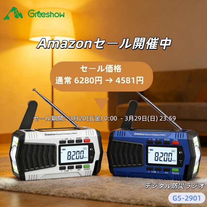 賞品:防災ラジオ GS-2901(2名様)