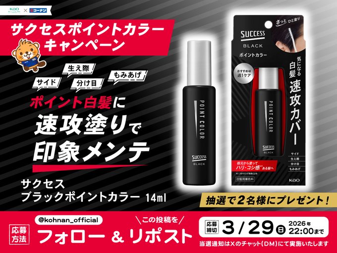 賞品:花王サクセスブラック ポイントカラー 14ml(2名様)
