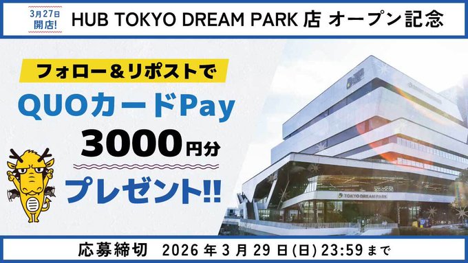 英国風パブ「HUB(82)」‐HUB TOKYO DREAM PARK店 オープン記念
