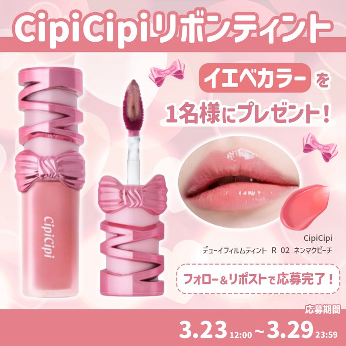賞品:CipiCipi デューイフィルムティント Rの”02 ネンマクピーチ”(1名様)