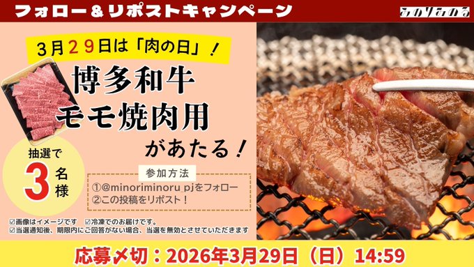 賞品:博多和牛モモ焼肉用400g(3名様)