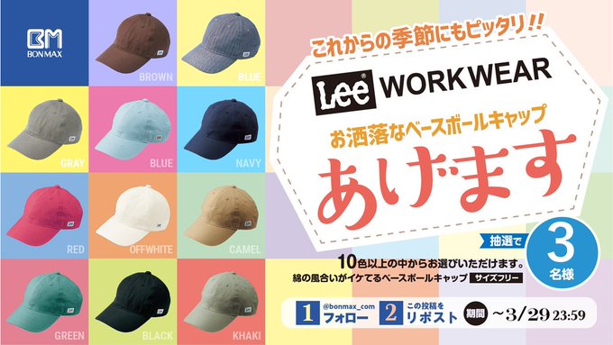 賞品:Lee WORKWEARのキャップ(3名様)