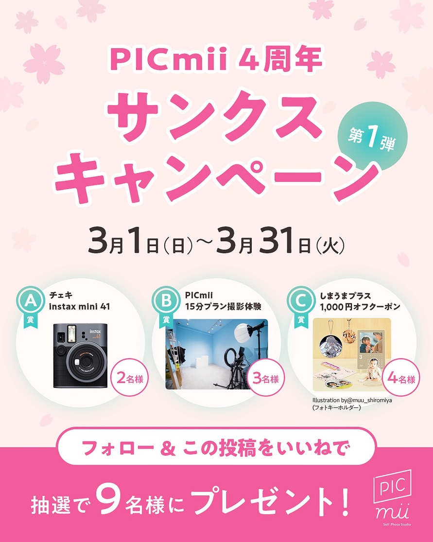 セルフ写真館 PICmii4周年サンクスキャンペーン第1弾