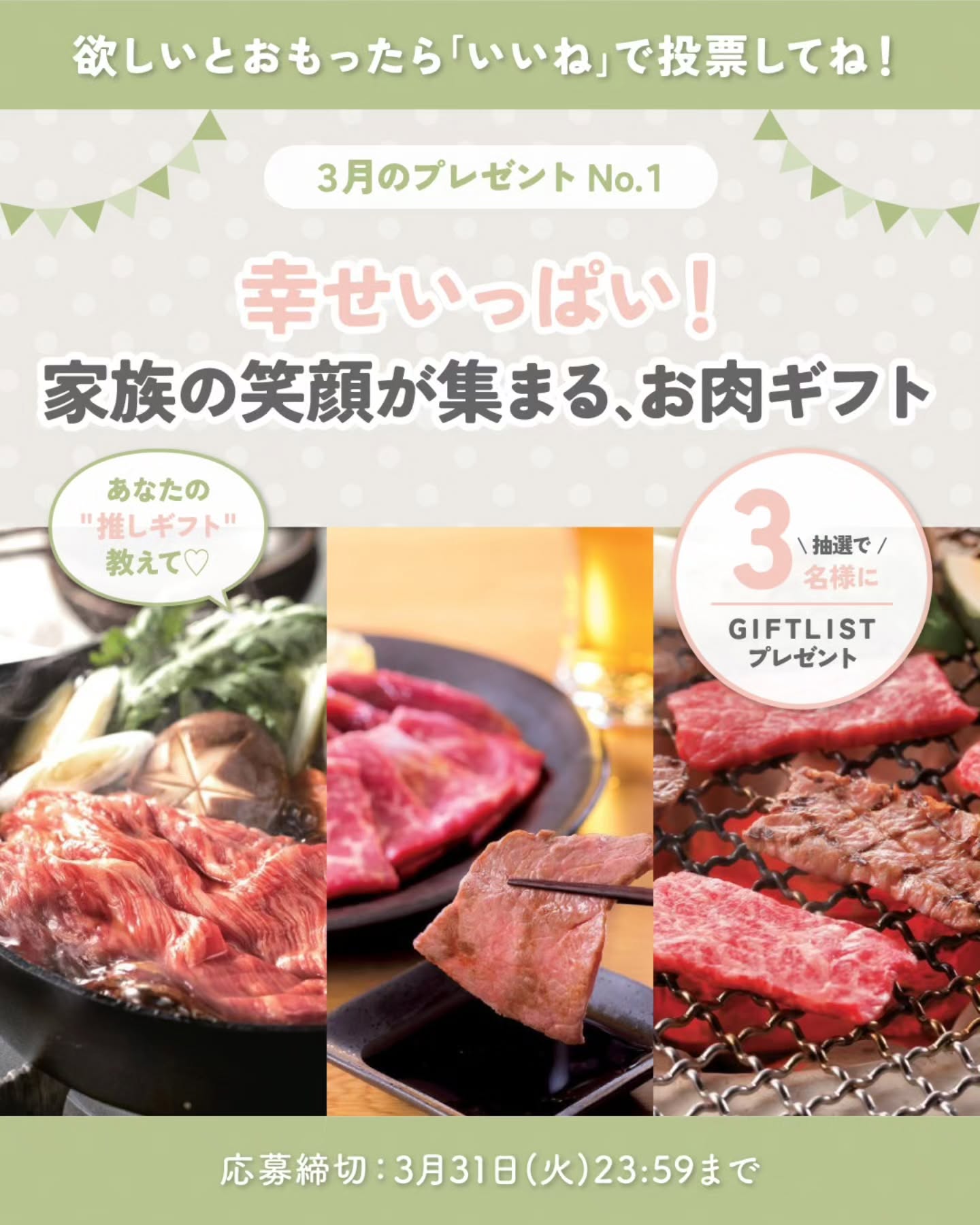 賞品:あなたが選んだ『GIFT LIST』(3名様)