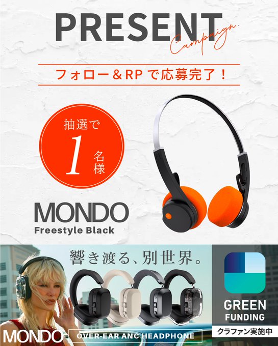 賞品:MONDO Freestyle オンイヤーヘッドホン(1名様)