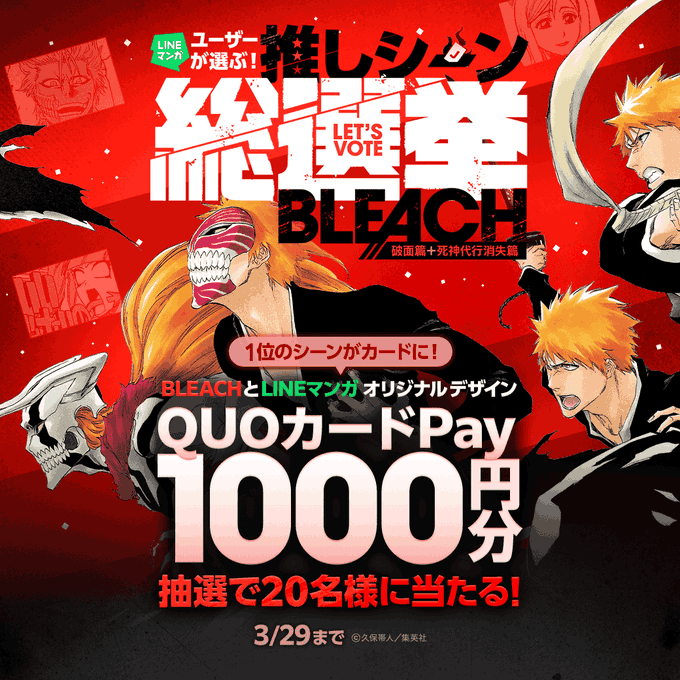 賞品:BLEACH × LINEマンガ オリジナルデザインQUOカードPay 1,000円分(20名様)