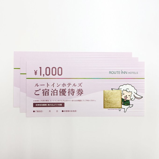 賞品:ルートインホテルズで使えるご宿泊優待券2万円分(3名様)