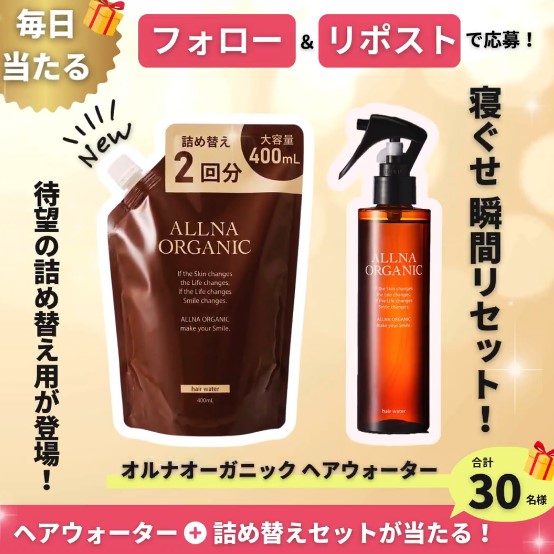 賞品:オルナのヘアウォーター・詰め替えセット(30名様)