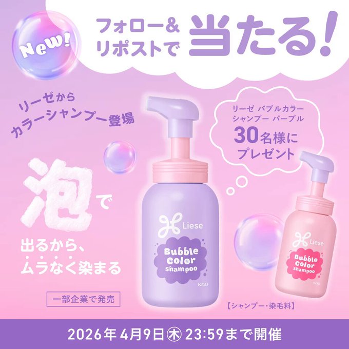 賞品:バブルカラーシャンプー(パープル)(30名様)