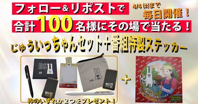 賞品:じゅういっちゃんセット+番組特製ステッカー(100名様)