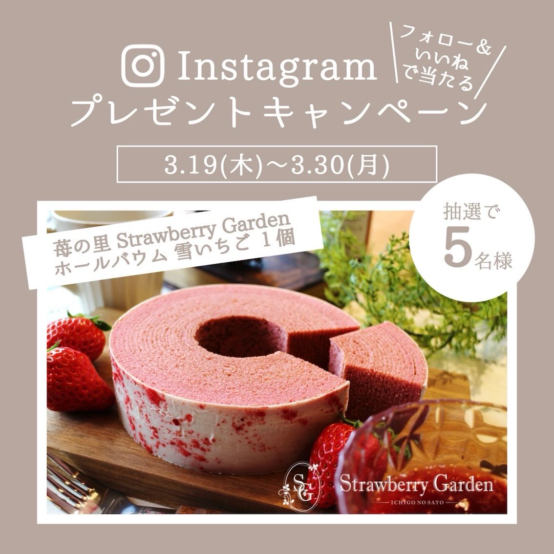 賞品:苺の里 Strawberry Garden ホールバウム 雪いちご(5名様)
