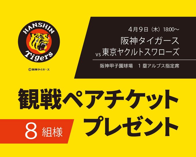 賞品:阪神タイガース 観戦ペアチケット(8組様)
