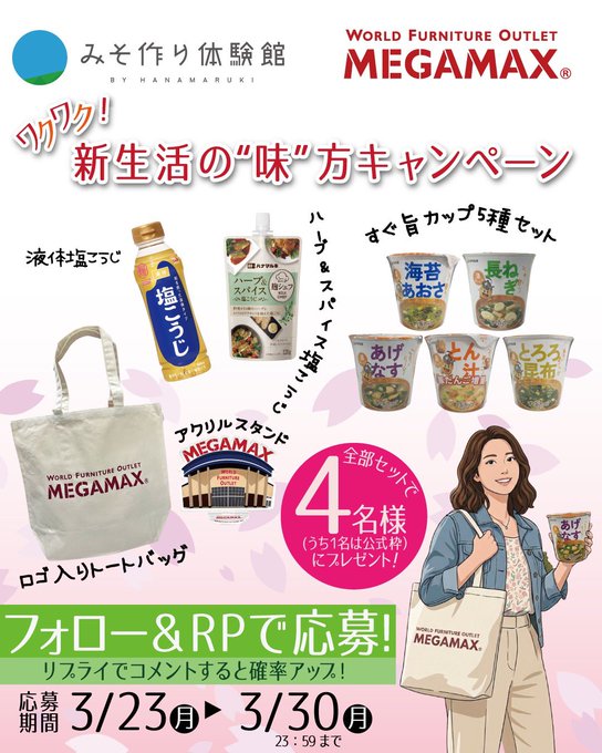 @Miso_Taikenkan @MEGAMAXofficial をフォロー&キャンペーン対象ポストをリポストしてご応募ください。