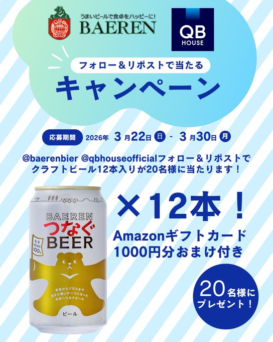 @baerenbierと@qbhouseofficialをフォロー&キャンペーン対象ポストをリポストしてご応募ください。