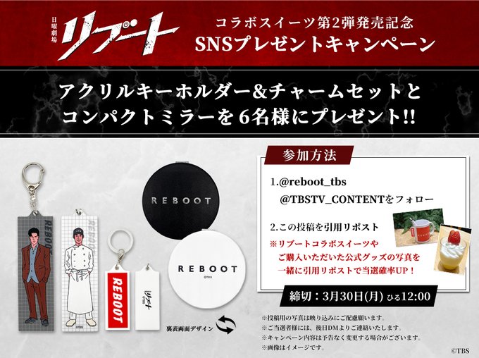 @reboot_tbs @TBSTV_CONTENT をフォロー&キャンペーン対象ポストをリポストしてご応募ください。