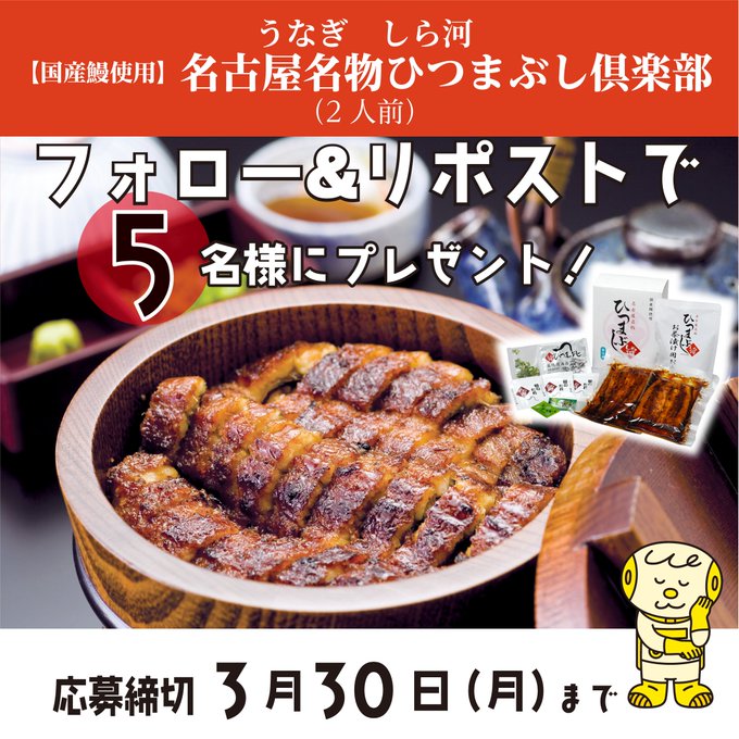 賞品:うなぎ しら河の「名古屋名物|ひつまぶし倶楽部」(5名様)