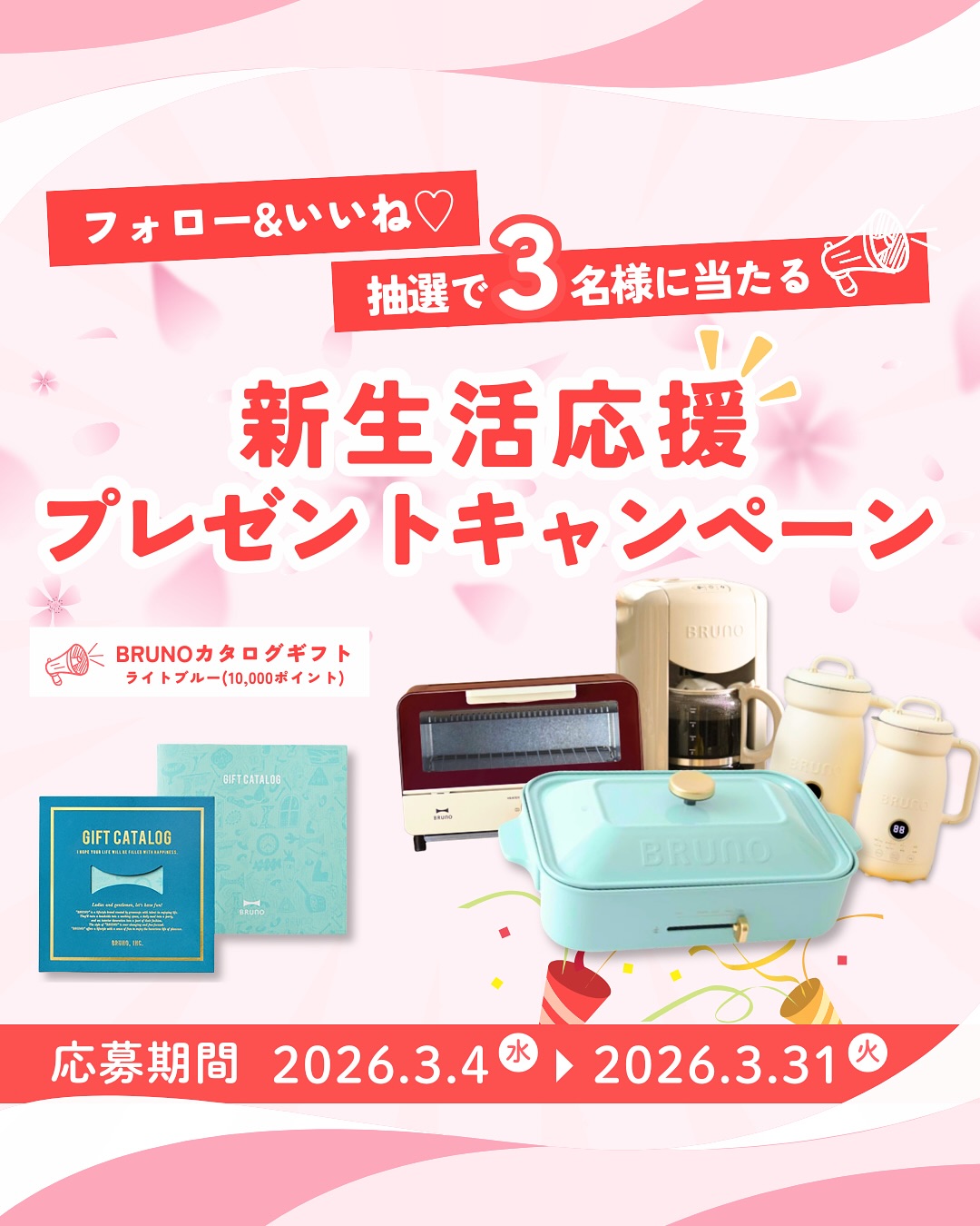 賞品:BRUNOカタログギフト ライトブルー(10,000ポイント)(3名様)