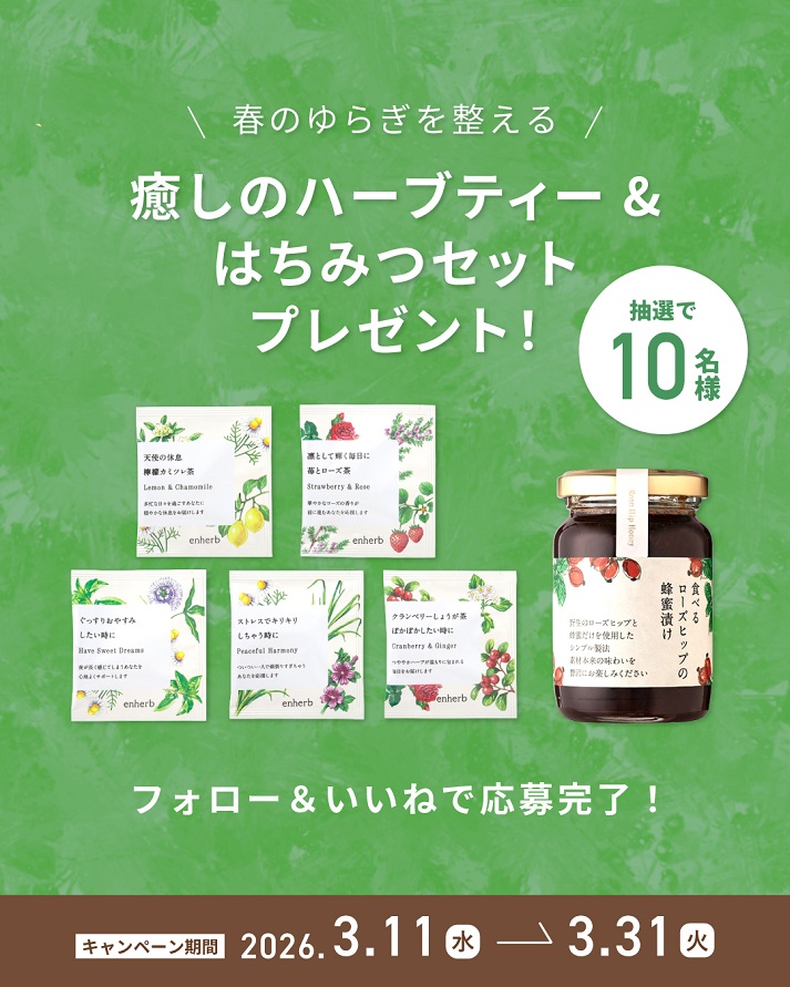 【Instagram懸賞】enherb ベストセレクション&食べるローズヒップ蜂蜜セットを10名様にプレゼント