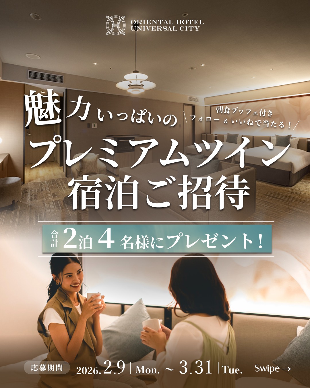 【Instagram懸賞】オリエンタルホテル ユニバーサル・シティ プレミアツイン 宿泊ご招待​を2組4名様にプレゼント