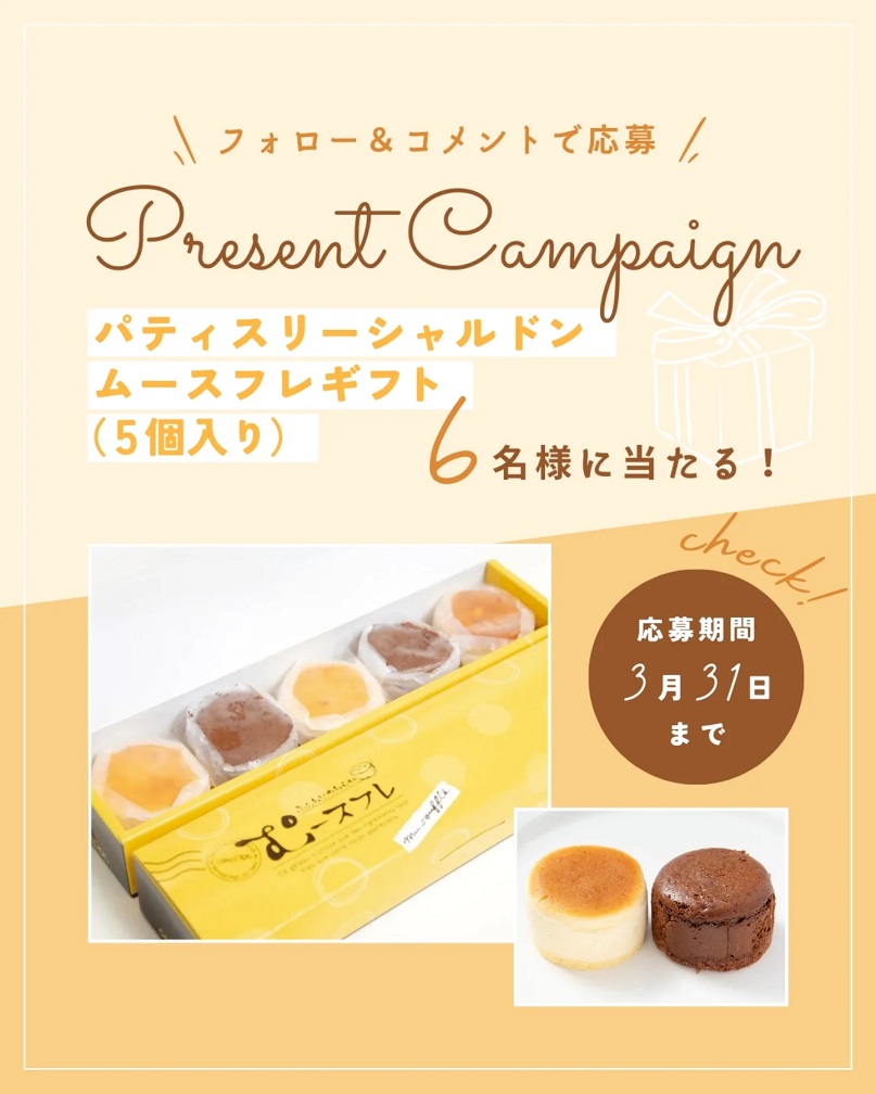 賞品:パティスリーシャルドン「ムースフレギフト5個入り」(6名様)