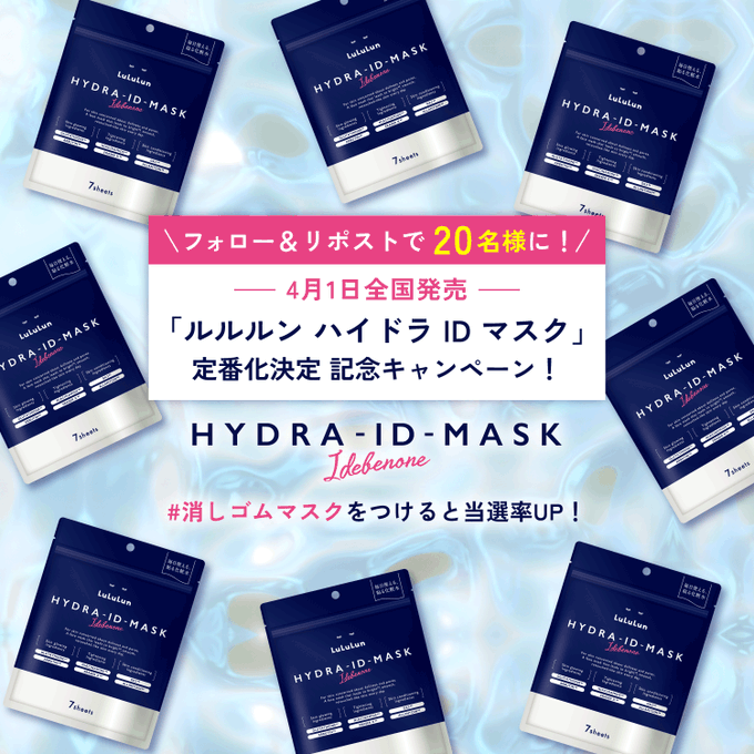 【X懸賞】ルルルン ハイドラ ID マスクを20名様にプレゼント 2026.03.29ルルルン‐フォロー&リポストキャンペーン 賞品:ハイドラ ID マスク(20名様) 締切:2026年3月31日(火)公式X(Twitter)アカウントをフォロー&キャンペーン対象ポストをリポストしてご応募ください。※詳細はキャンペーンページにてご確認ください。応募はこちらから