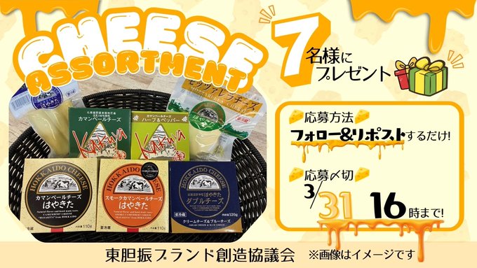 賞品:北海道安平町のチーズ詰合せ(7名様)