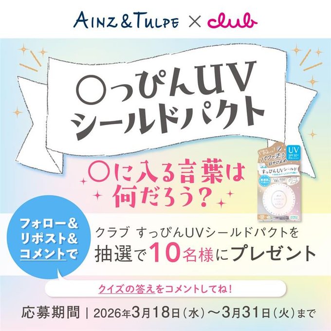 賞品:クラブ すっぴんUVシールドパクト(10名様)