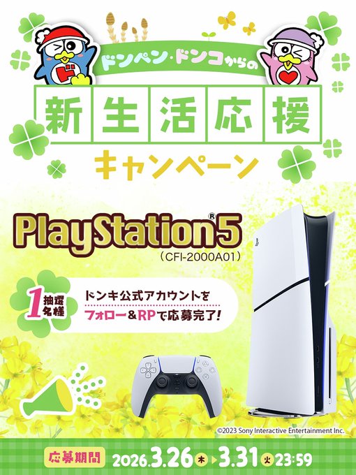賞品:PlayStation®5 (CFI-2000A01)(1名様)