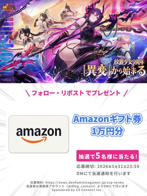 賞品:Amazonギフトカード 1万円分(5名様)