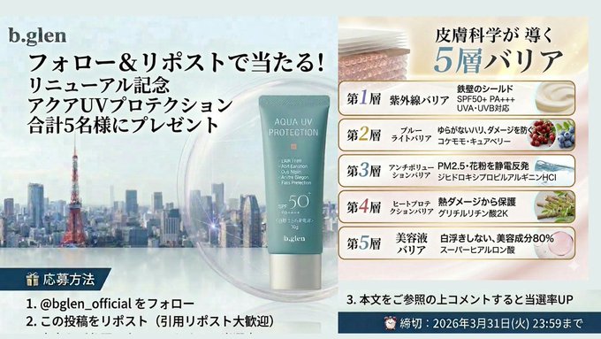 3️⃣ コメント欄に #ビーグレンアクアUV と、下の5層シールドから気になる「番号」を書いてね!📝