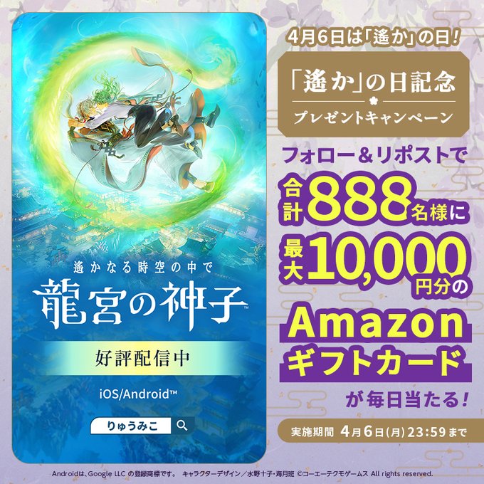遙かなる時空の中で 龍宮の神子公式Xアカウントをフォロー&キャンペーン対象ポストをリポストして、記載されているURLからご応募ください。